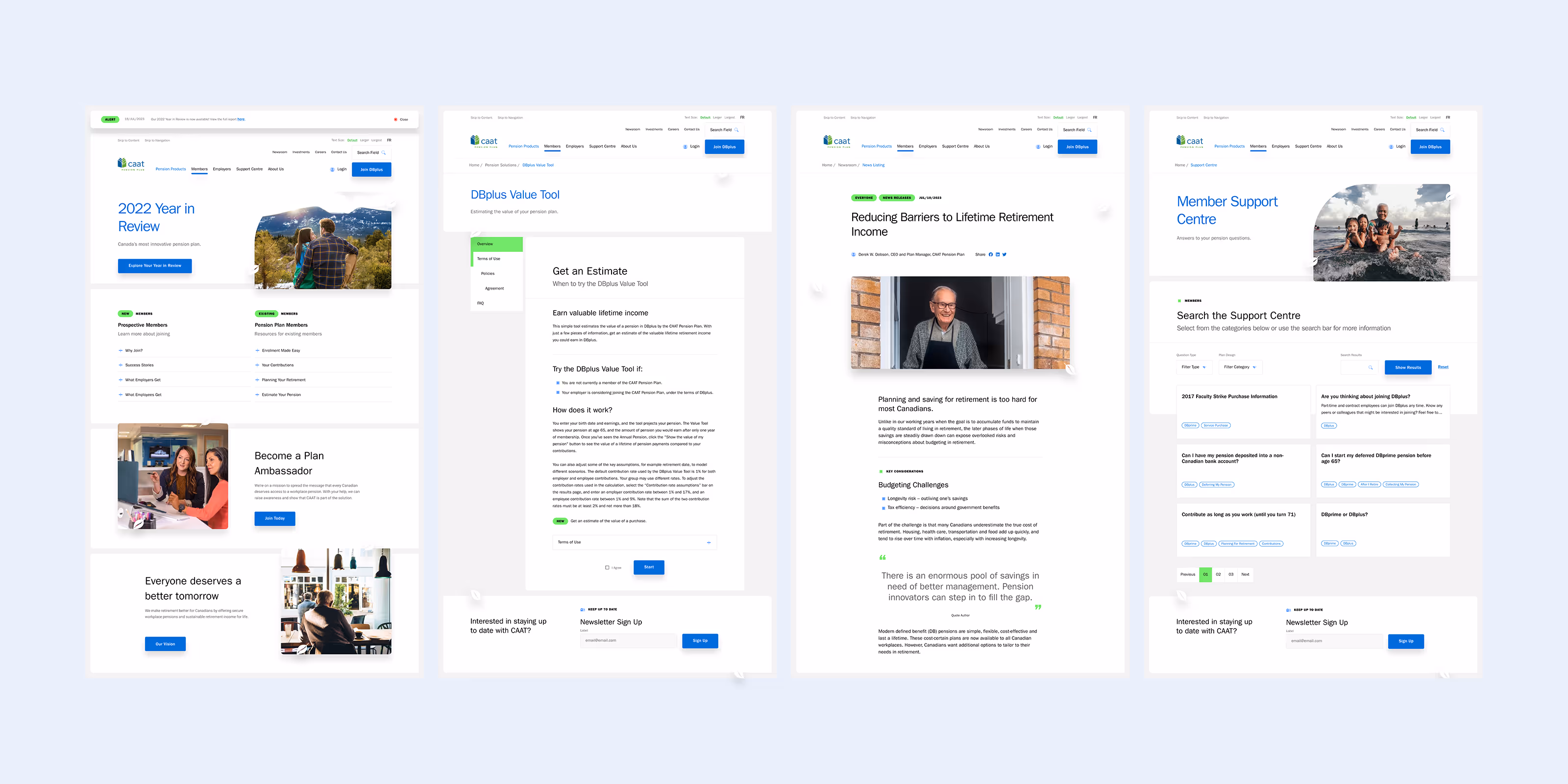 CAAT was operating a legacy website wich was not compliant with regional AODA accessibility standards. The site had a poor user experience which affected the ability of CAAT to strategically achieve their goals. Sign ups for pension participants were low due to a poor navigation structure along with strategic tools such as pension calculators which were not functioning as intended. The organization itself was dedicating resources to customer experience on the website which could have been automated by better navigation and content strategy which resulted in additional internal cost to manage the site.
